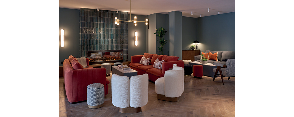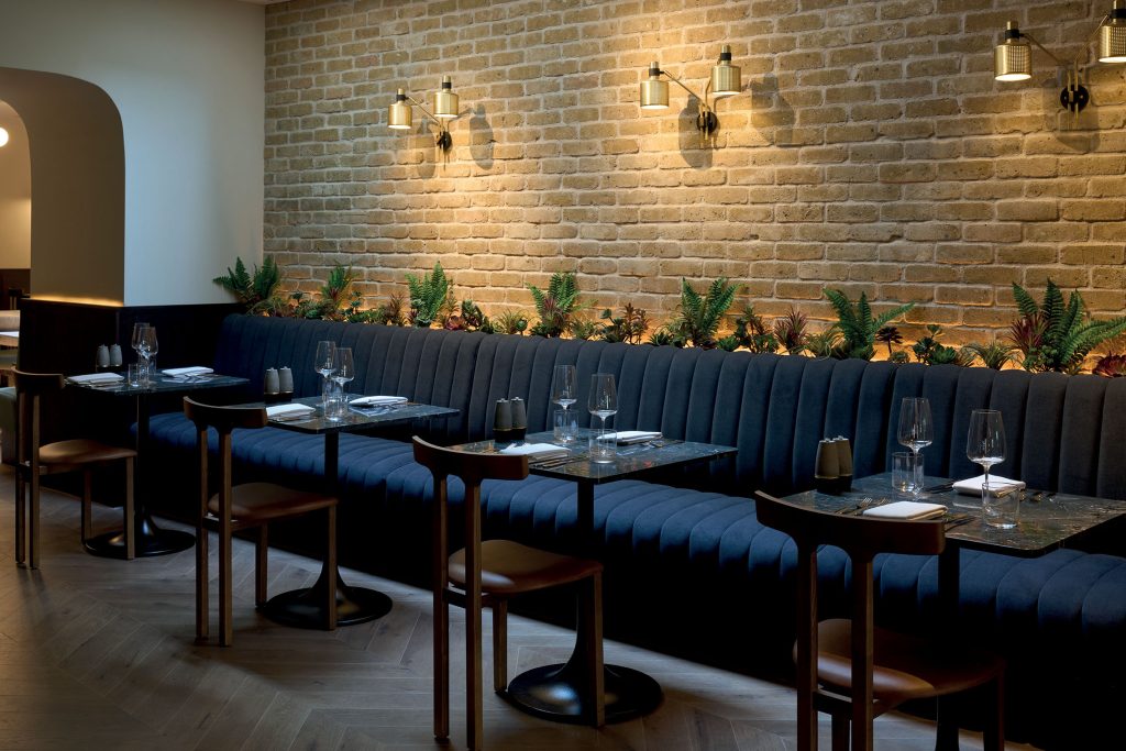 One of the many pitfalls designers, operators, and developers face when working within a historic shell is failing to let the interiors breathe, making spaces feel stale and museum-like. However, the design direction inside The Store is unapologetically focused on creating a new chapter in the building’s story. Notably, rather than traditional art (or any art at all in the public areas), the designers have played with lighting, wall colours, textures and proportions. For instance, the area between the bar and the restaurant features a blue porcelain tile wall set against a lighter blue backdrop, framing a modern fireplace. This adds a fresh, contemporary touch to the space without this ‘in-between area’ having to try too hard.