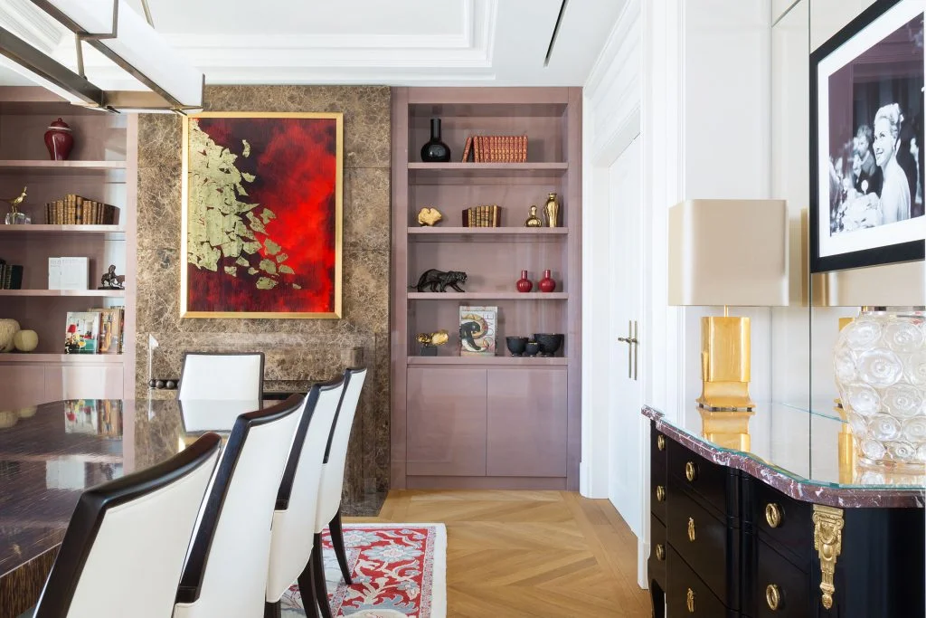 Spanning five floors, the hotel’s 26 spacious suites have been designed to the highest specification. While each is different, they all share a harmonious and soothing beige colour palette, contrasted by touches of blue. The colours brighten and deepen as the sunlight’s reflection on Lake Geneva shifts throughout the day. Every detail has been carefully considered to optimise space and streamline movement throughout the suites, and the sophisticated décor is made up of truly unique elements from straw marquetry sliding doors and wardrobes, to handmade wallpaper, Lalique door handles, majestic marble fireplaces and beautiful bookcases. The furniture has been cleverly selected, blending the classicism of a Taillardat chest of drawers with the clean lines of Christian Liaigre tables and armchairs. In the living rooms of the suites, guests can simply open the door of a lacquered cabinet, decorated with hand-painted spring flowers and mother-of-pearl inlay, to discover a dazzling ‘Experience Bar’ crafted by Atelier Anne Midavaine in five unique colour schemes. Lighting has been designed by Japanese firm, Akari-Lisa Ishii, to enhance the artwork chosen for each suite and throughout the rest of the hotel. The stairwell is accentuated by black and white photographs and the bar is home to an abstract painting by Aigana Gali. In the lobby, gold leaf paintings by Nantes-based artist, Nancy Gaiss delicately echo the opulent interior design.